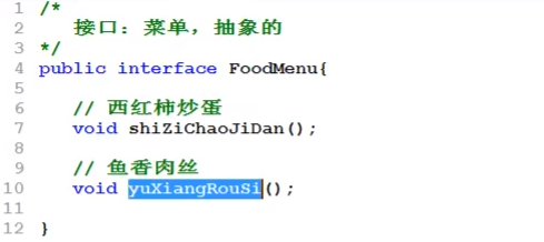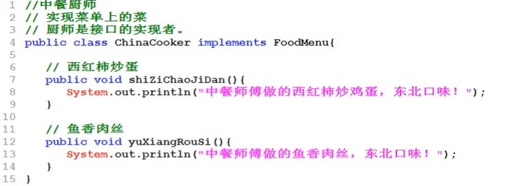 【两类厨师只实现菜单,不关心顾客,去掉Customer和Test可以编译通过】