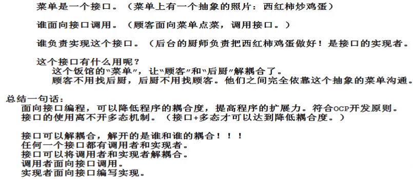 【接口是核心最难的地方,由架构师/高级软件工程师/项目经理定义,初学者一般写关于实现的代码】