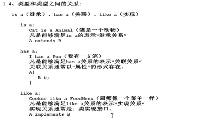 【类与类之间的关系,is a 继承,has a 属性,like a 实现 】