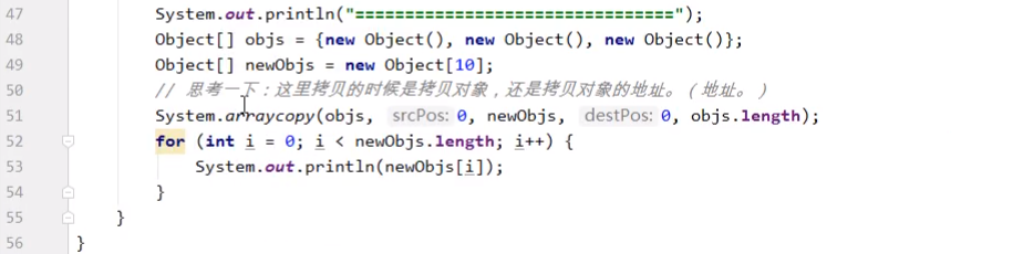 【对于Object型的数组,在进行数组元素拷贝时,拷贝的是对象元素的地址而非对象本身】