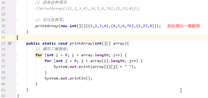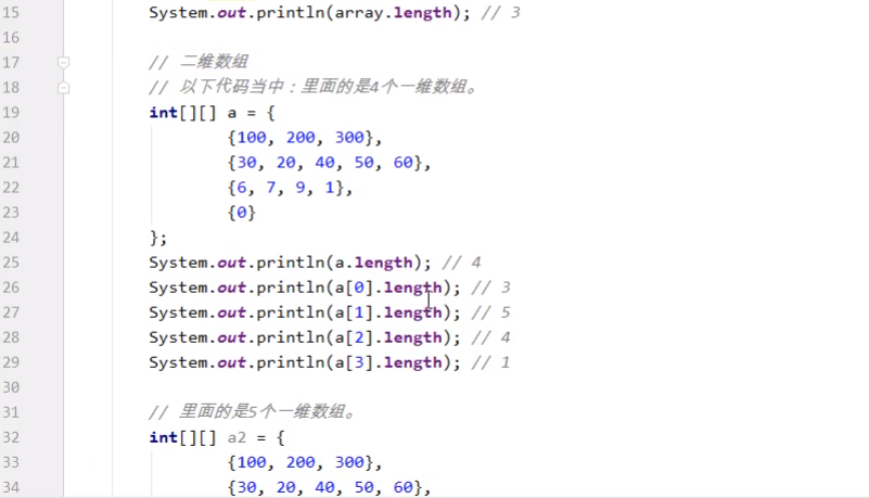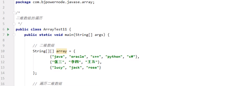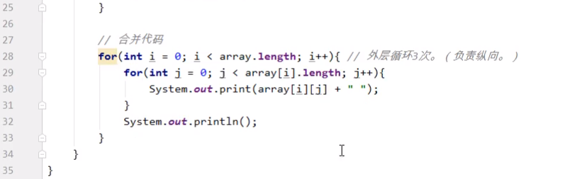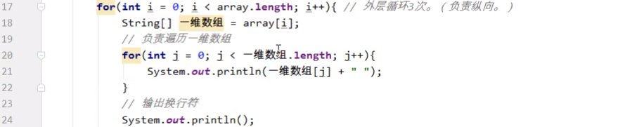 【使用for循环嵌套实现二维数组的遍历,并输出元素】