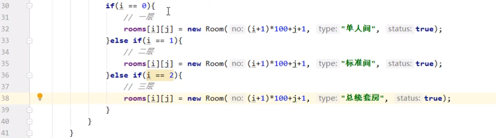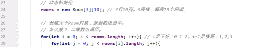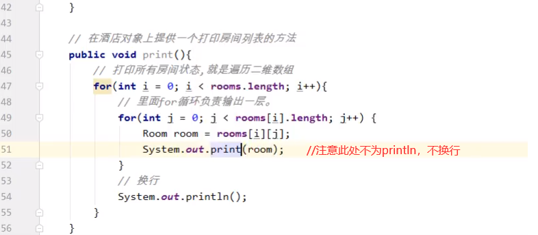 【无论是在数组框架中创建对象,还是打印房间状态,要想着利用for循环的嵌套去遍历】