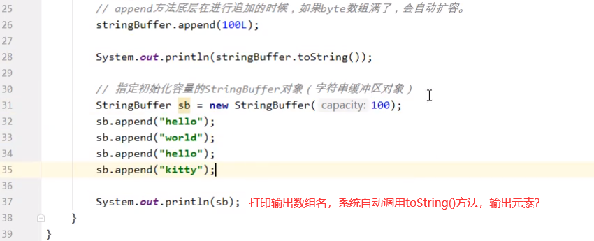 【字符串缓冲区 StringBuffer】 【大量的字符串拼接】【字符串缓冲区引用.append()】