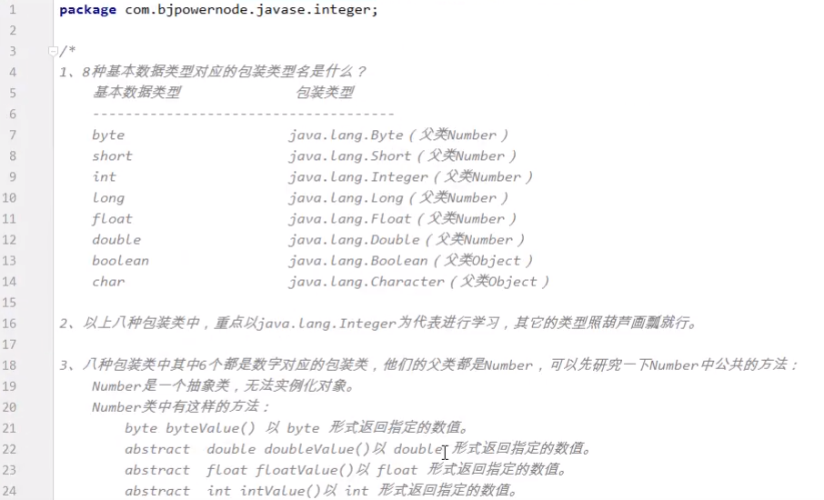 【八种基本数据类型对应的包装类型】【八种包装类型都继承于父类Number】