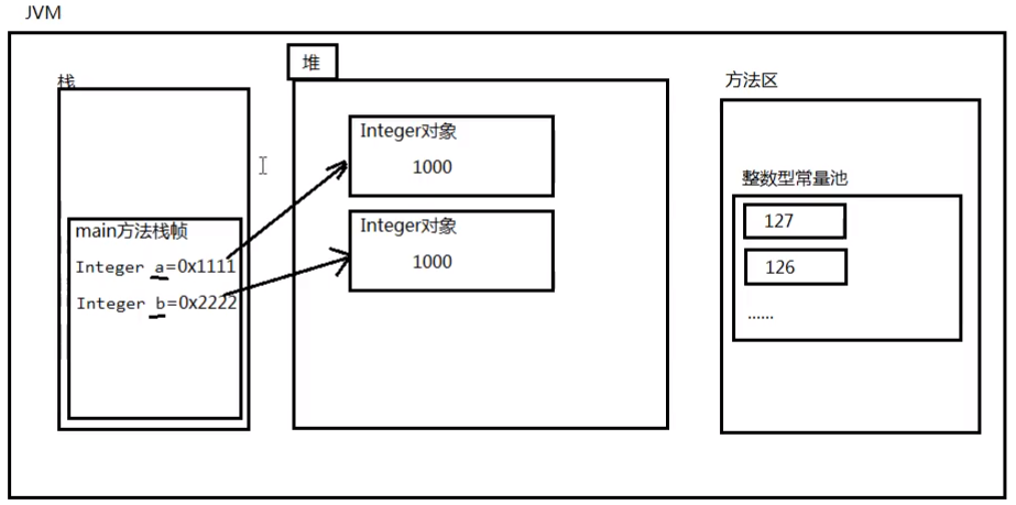 【Integer a = 1000;Integer b = 1000; 内存框图】
