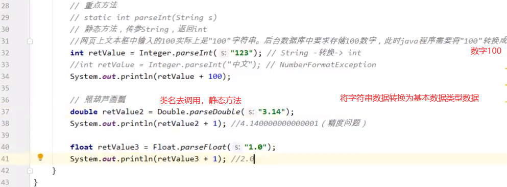 【static int parseInt(String s) 】【将字符串数据转换为基本数据类型数据】