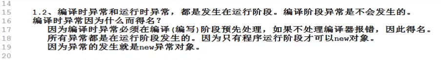 【所有的异常都是在运行时才会抛出,在编译阶段不会出现异常,因为抛出异常需要new对象,而编译阶段不会产生对象】