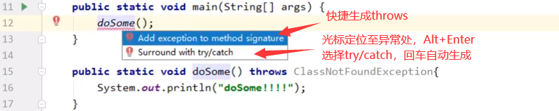 【快捷生成 try...catch 】【快捷生成 throws 】