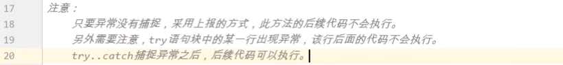 【try...catch捕捉异常执行完后,在同一方法体中,余下的程序可以执行】