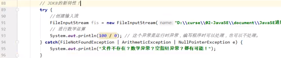 【catch() 括号中可以是具体的正确的异常类型,也可以是该异常的父类型异常】【不抓他儿子,抓他爹也管用】
