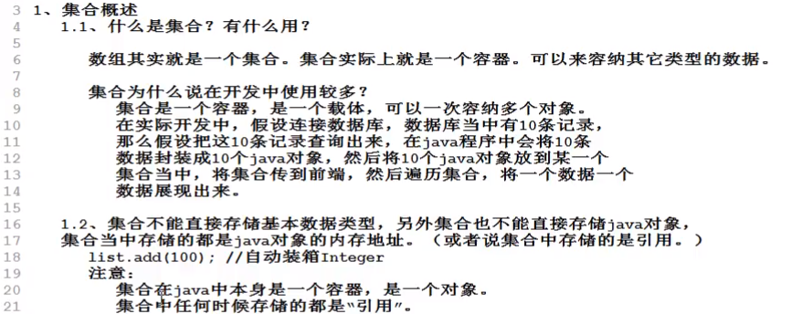 【集合是一个容器,只存放内存地址,不存放基本数据类型,也不存放对象】【非常重要,开发时每天都要用】