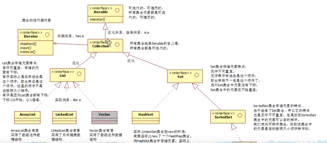 【集合Collection继承结构图】【Iterable】【List】【Set】【泛化关系】【关联关系】【背会】