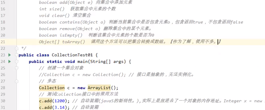 【Boolean add(Object e)】【size】【clear】【contains】【remove】【isEmpty】【toArray】