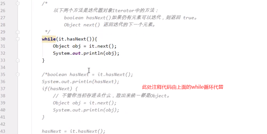 【ArrayList的迭代/遍历】【遍历集合使用while循环(使用它的两个方法)】