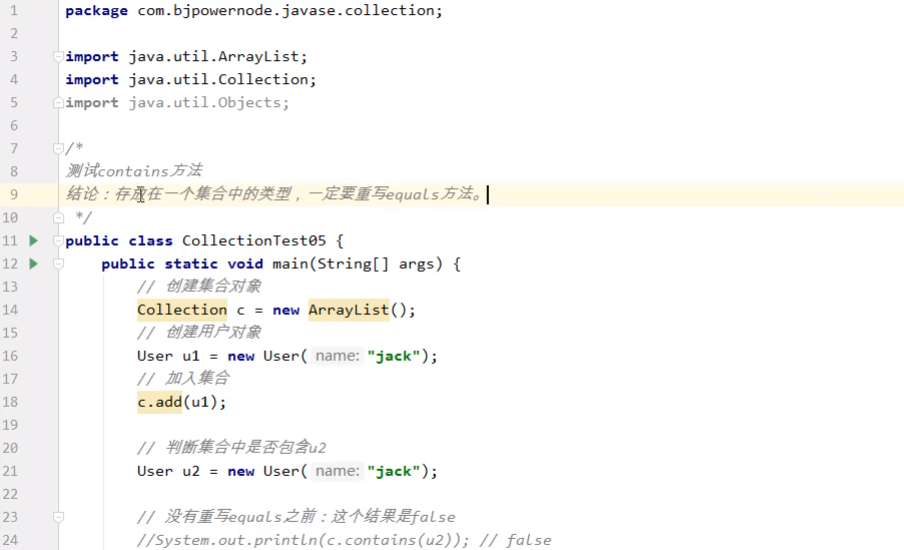 【放在集合当中的元素的类要重写equals方法,因为要比较内容,而非内存地址】