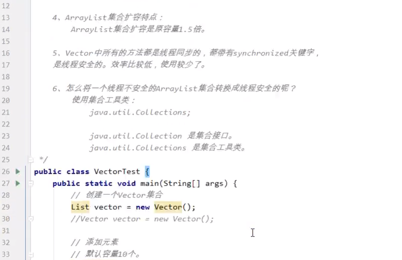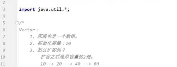 【Vector】【Vector的初始化容量为10,每次扩容为一倍】【Vector线程同步】【Collections集合工具类】