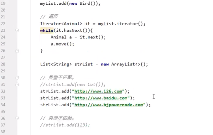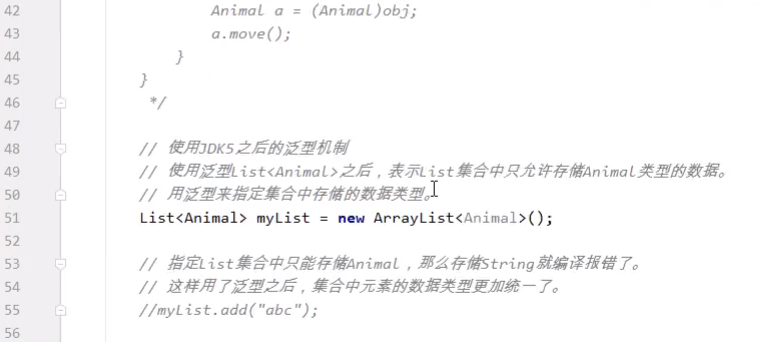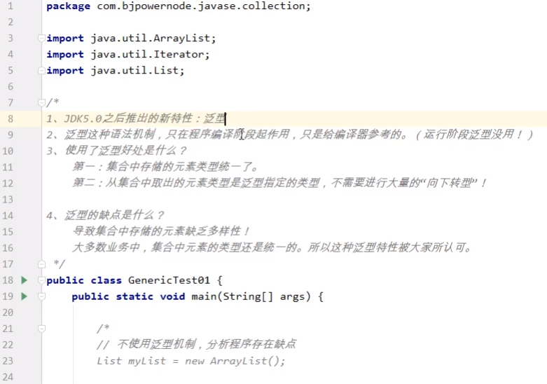 【泛型机制】【泛型的优缺点】【仅在编译阶段起作用】【在new集合时规定集合元素的类型】【在遍历时左边也要有】
