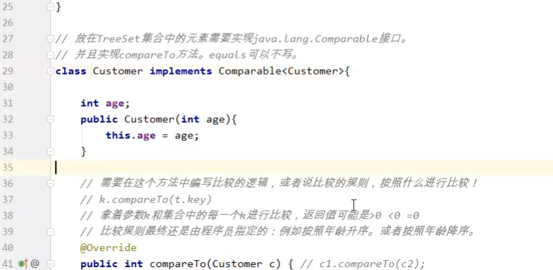 【自定义类实现Comparable接口,重写compareTo方法(返回一个int型数字)】【 视频P710-711 】