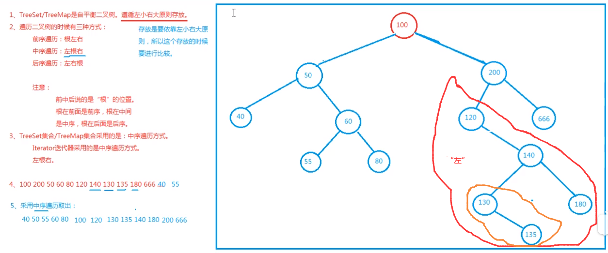 【自平衡二叉树原理】【左小右大原则存放】【TreeSet和TreeMap采用中序遍历方式】