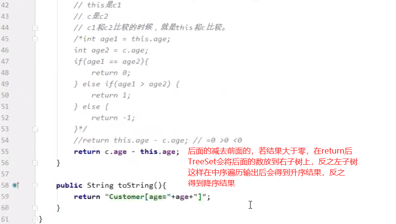【TreeSet排序的第二种方式:使用自定义比较器去实现Comparator接口,重写(生成)compare方法】