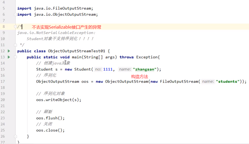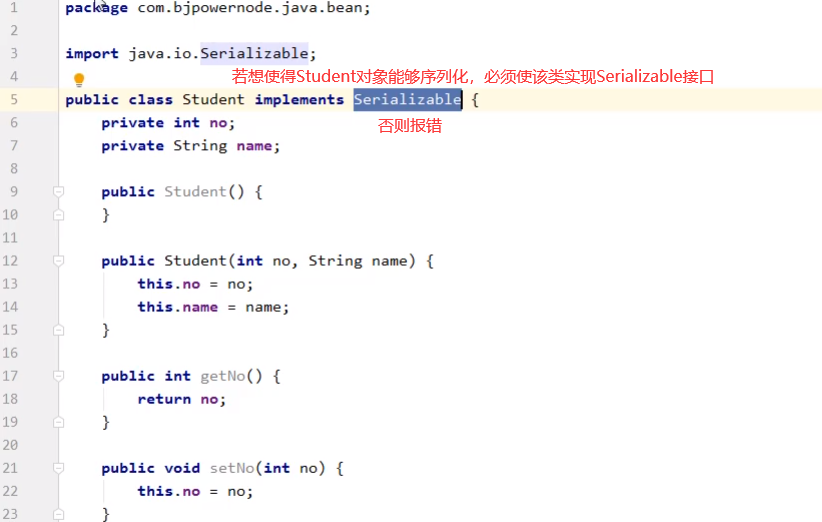 【Student类实现可序列化Serializable接口】【若想序列化必须实现Serializable接口】