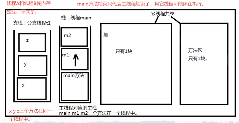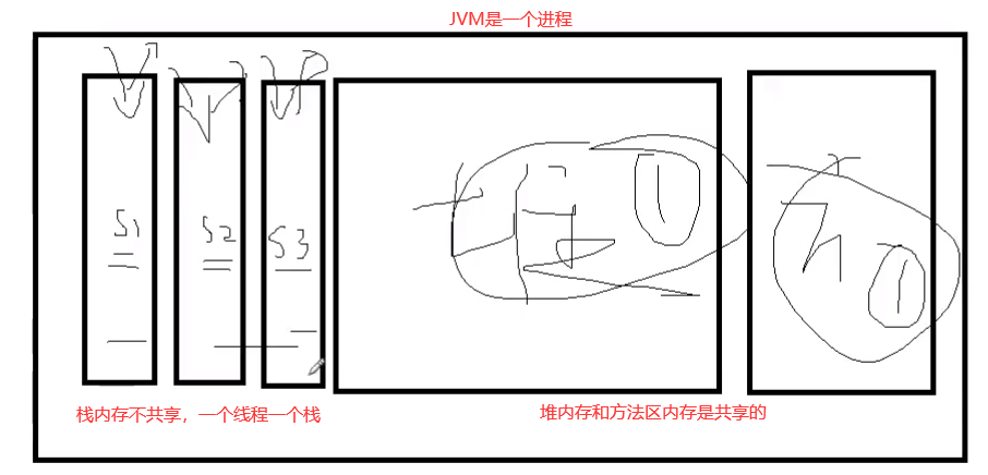 【对于线程而言,栈内存不共享,只共享堆内存和方法区内存】
