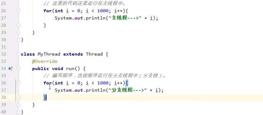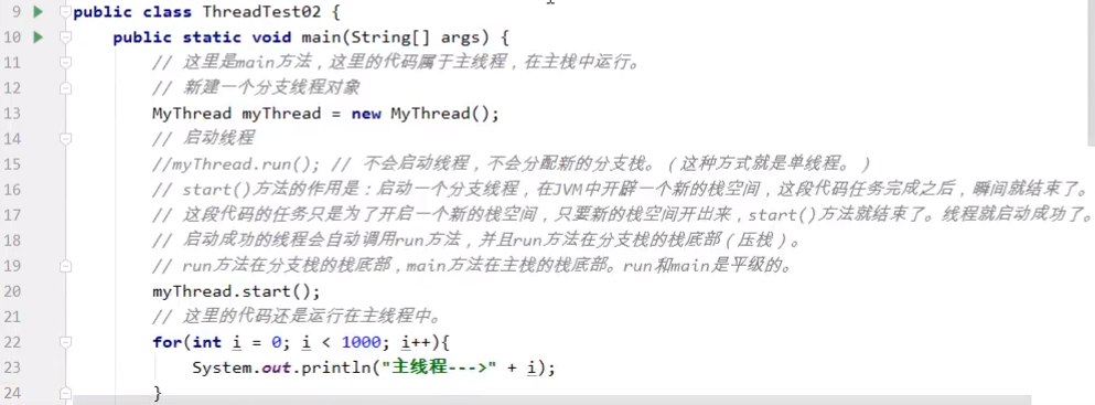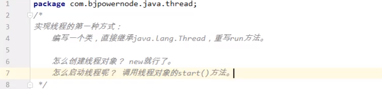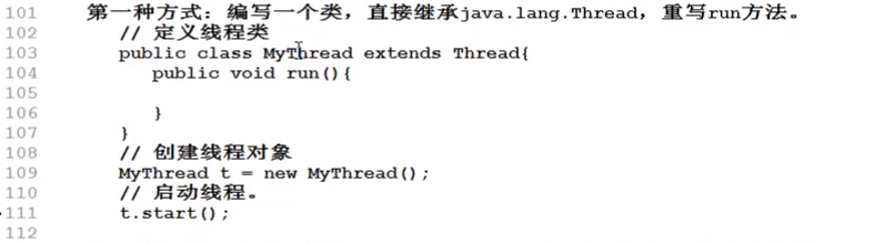 【实现线程的两种方式(后面还有第三种)】【第一种方式:编写一个类,让它继承java.lang.Thread,重写run方法{想执行什么就写什么}】