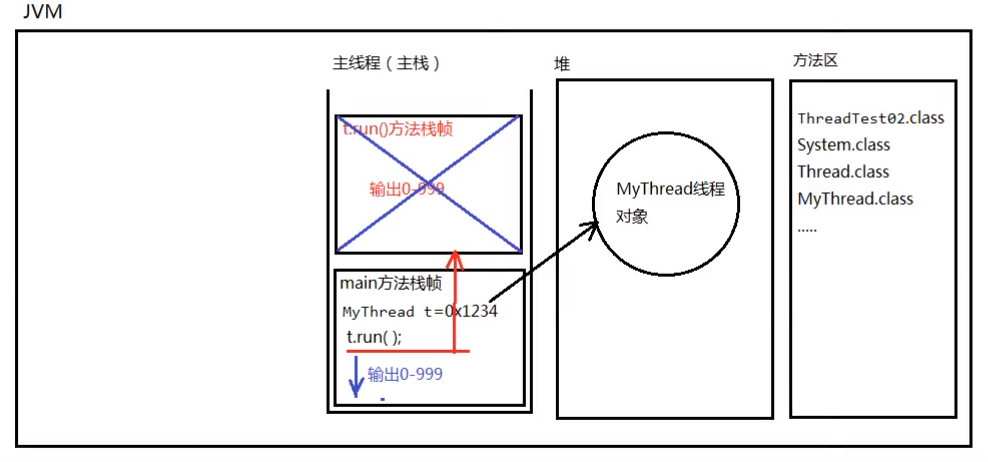 【执行run()而不执行start()时的内存示意图(和调用子方法相似,单线程)】