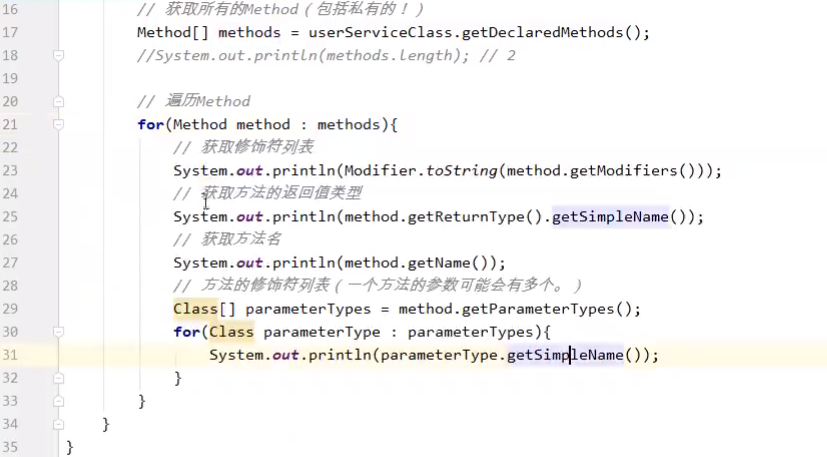 【获取指定类的所有方法:类名.getDeclareMethods()】