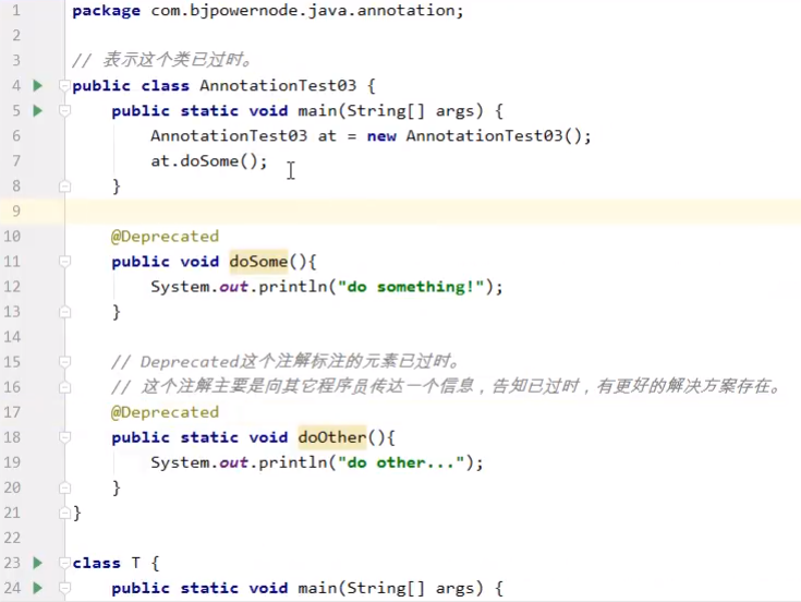 【该注解的作用是告诉别人该方法或类已过时,有新的更好的方案】