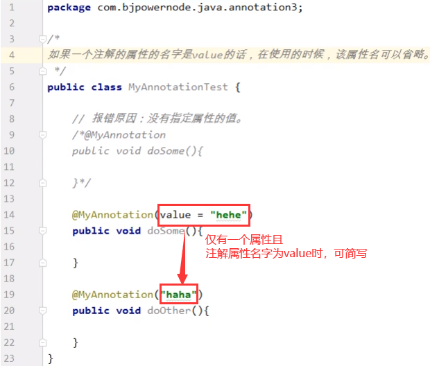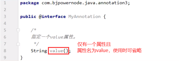 【注解属性的名字为value且无其他属性时,使用该注解时属性名可省略】