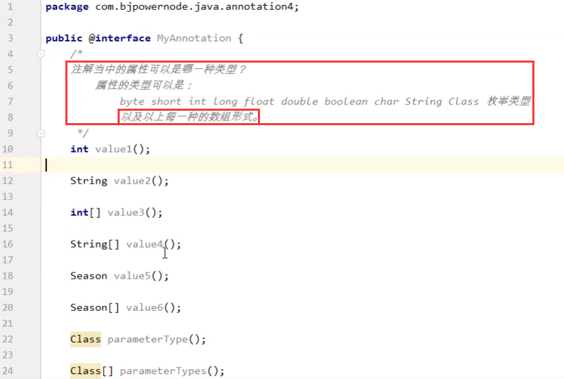 【注解当中的属性可以是哪一种类型:八种基本数据类型以及String、class、枚举类型】