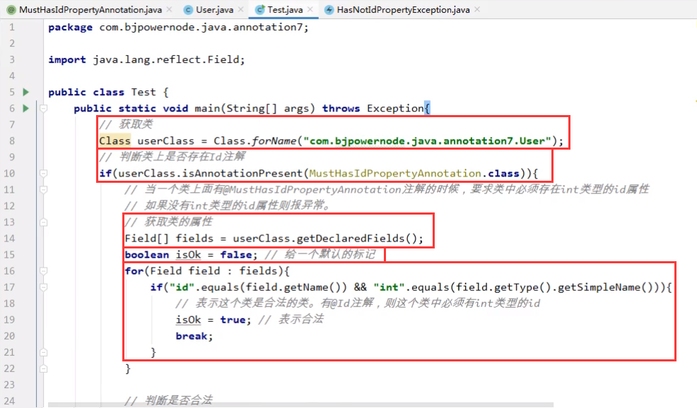 【判断该类上是否有某一个注解:该类的引用.isAnnotationPresent(指定注解类.class)】
