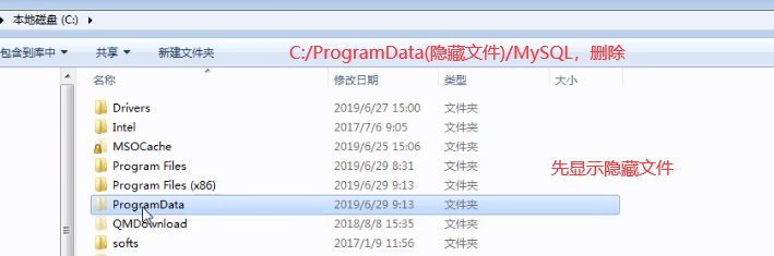2.删除 c盘 隐藏文件中的 MySQL目录