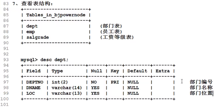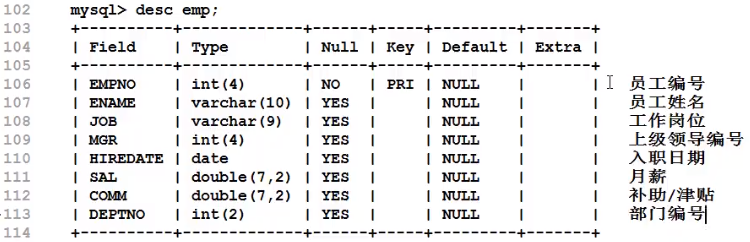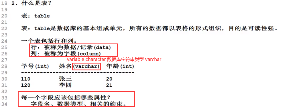 【表table包括字段和记录】【字符串类型 varchar 】【字段的属性:字段名、数据类型、相关约束】