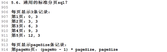 【通用分页sql】【limit (pageNo - 1) * pageSize , pageSize】【每页起始下标:(pageNo - 1) * pageSize】