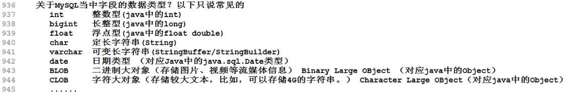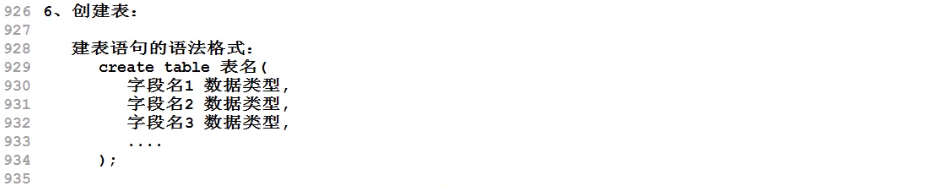 【创建表】【创建表的语法格式】【表中字段的数据类型】【int/bigint/float/char/varchar/date/BLOB/CLOB】