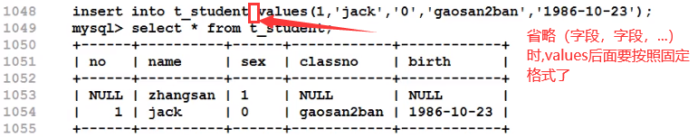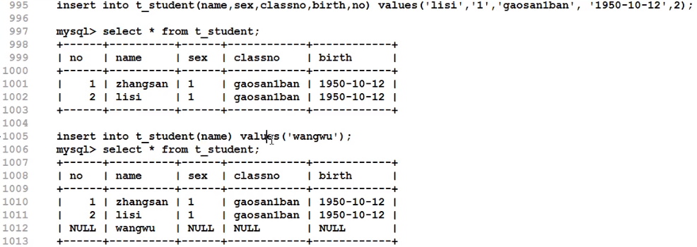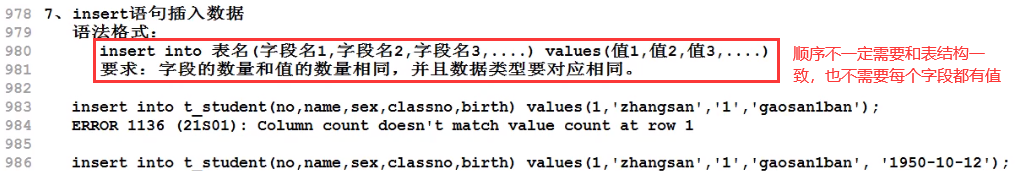 【插入时字段的顺序和数目可以不与被插入的表结构一致,只要求插入语句的字段和值相对应】