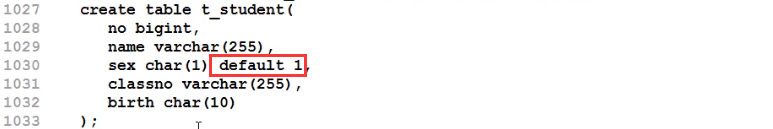 【在建表时给字段赋默认值:数据类型空格default 值 】