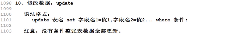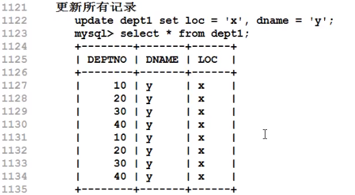 【某些记录的字段名对应的值为null时,可使用update更新】