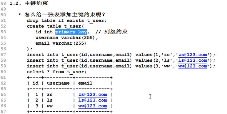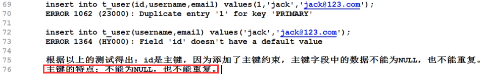【主键的术语】【主键约束】【主键字段】【主键值】