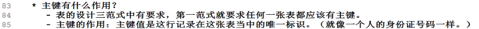 【主键的作用:一行记录的的唯一标识】【第一范式】