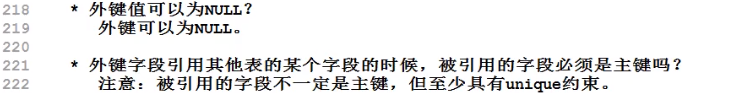 【外键值可以为null】【外键引用的字段可以不是主键,但必须要有唯一性unique约束】