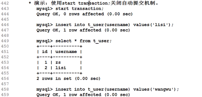 commit; //提交事务,将硬盘中的数据按缓存中的操作作相应变化,并删除缓存