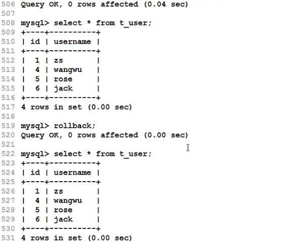 rollback; //回滚事务,返回缓存中的某一个点,或清除缓存的数据