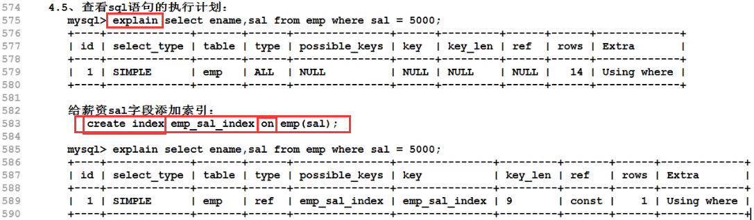 【创建/删除索引】【create index 索引名 on 表名(字段名)】【drop index 索引名 on 表名】