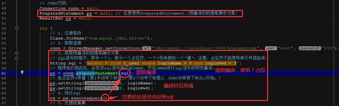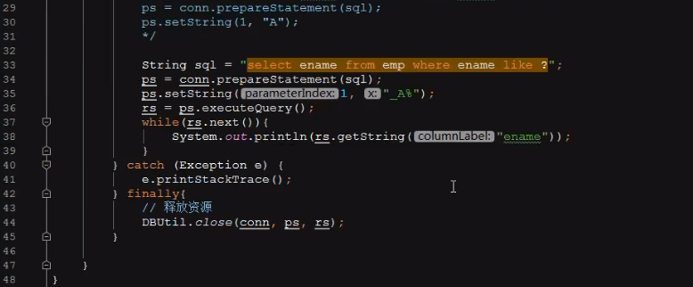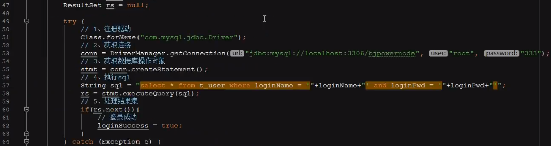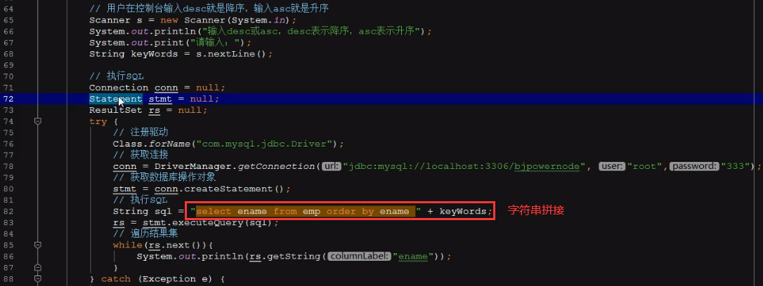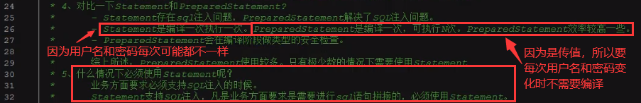 【必须使用Statement的情况:要进行SQL语句的注入、SQL语句拼接的时候】
