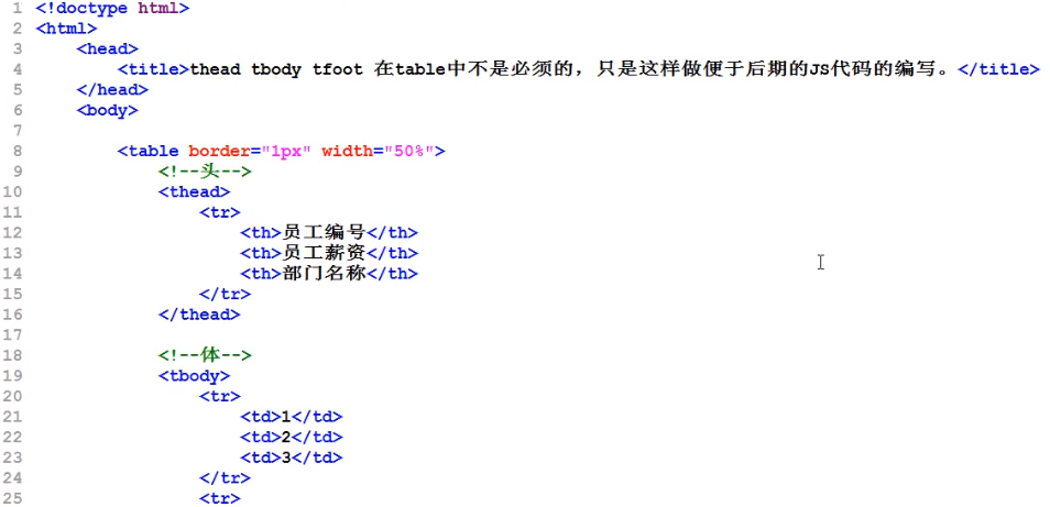 上面的几个部分在表格中不是必须的,只是有利于后面JS代码的编写