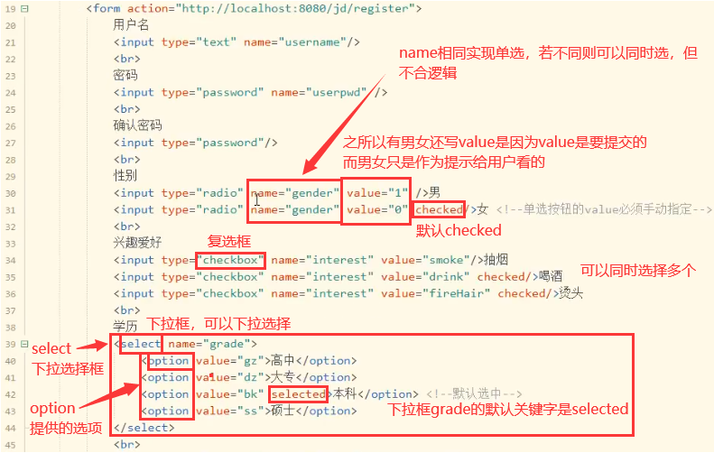 【性别单选值的问题】【单选类型radio】【默认checked】【复选框checkbox】【下拉框select option】【默认selected】