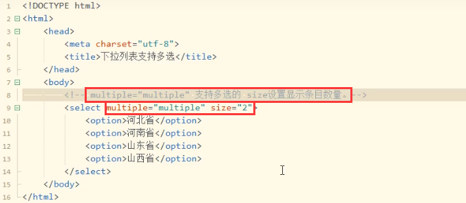【下拉列表支持多选 multiple="multiple"】【设置显示条目数量 size="2"】